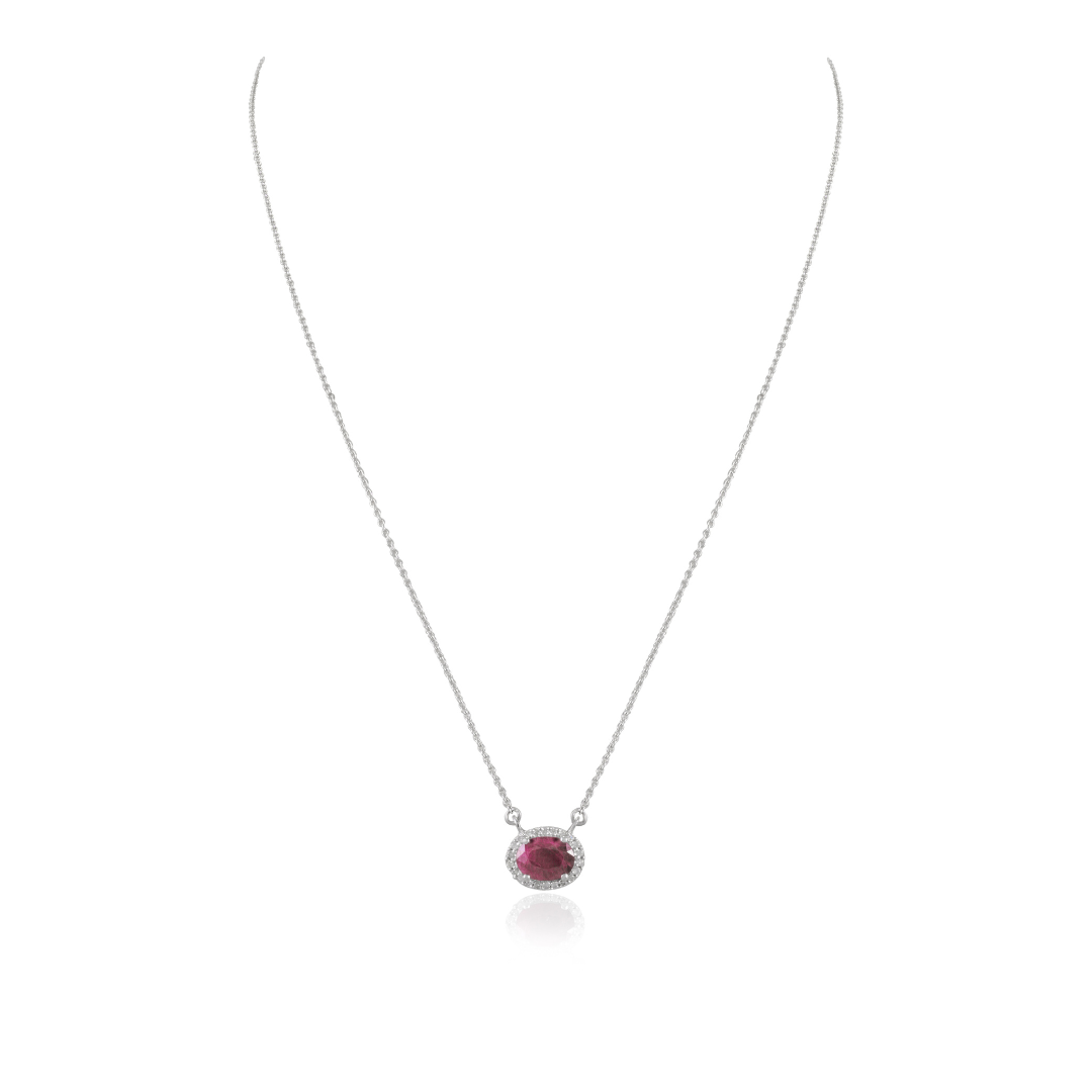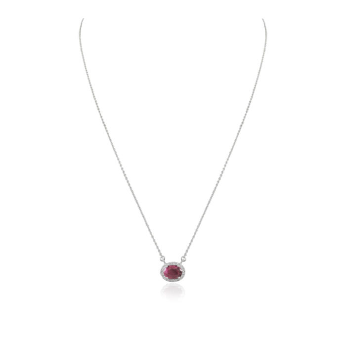 The oval ruby and diamond combination on this necklace is stunning. It’s a perfect piece for special occasions.