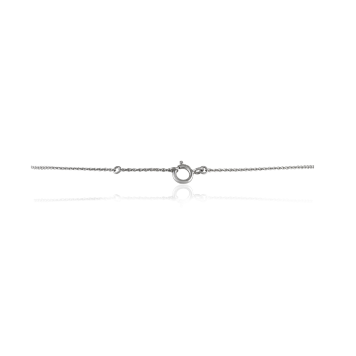 Adding to the elegance, this necklace is adorned with twenty-two diamonds totaling 0.08 carats. The diamonds, each measuring 1.2 mm, are set in a sophisticated prong setting that enhances their natural brilliance. This design allows their vivid sparkle to shine through, creating a captivating effect that elevates the overall appeal of the necklace.