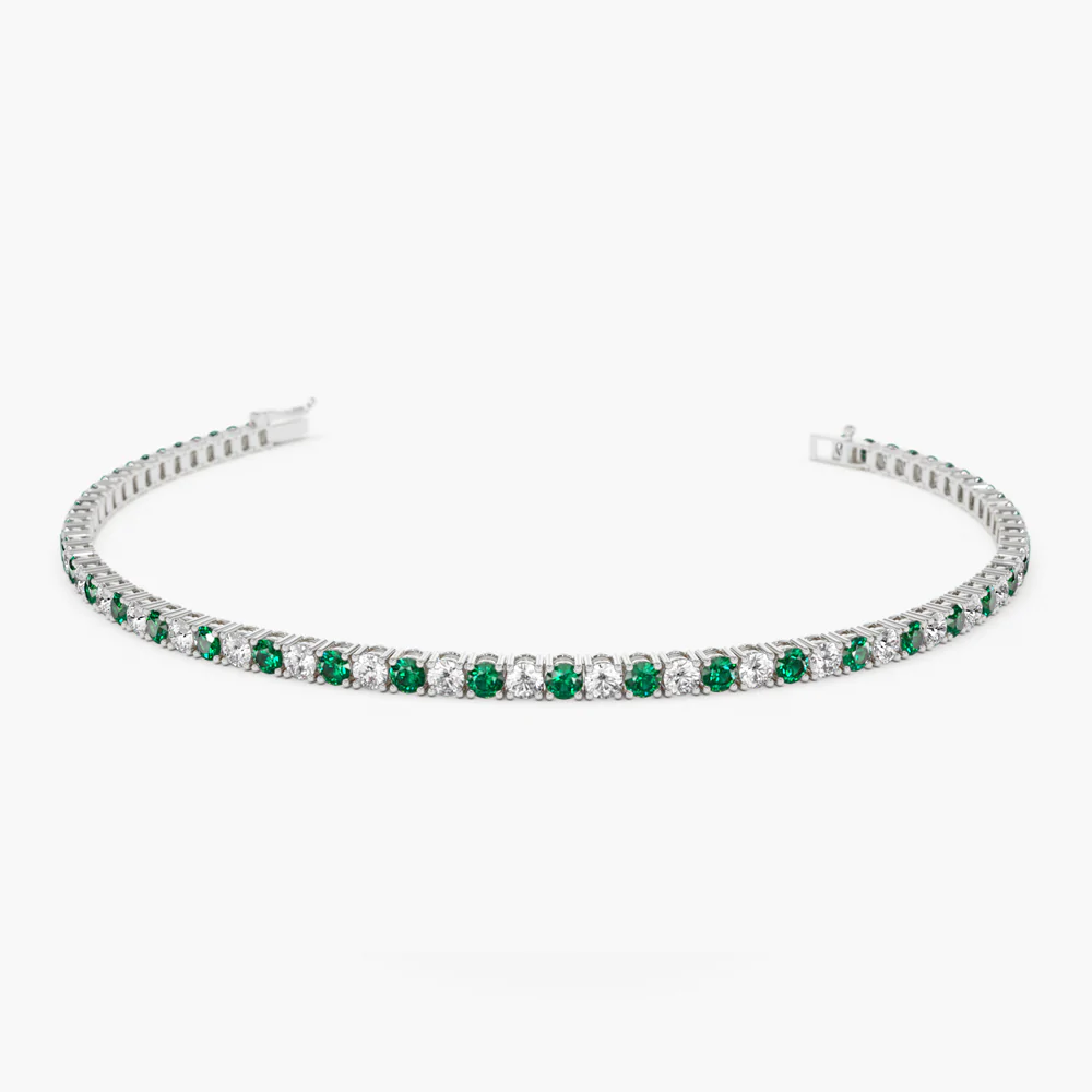 14K Solid Gold Prong Setting Diamond and Emerald Tennis Bracelet