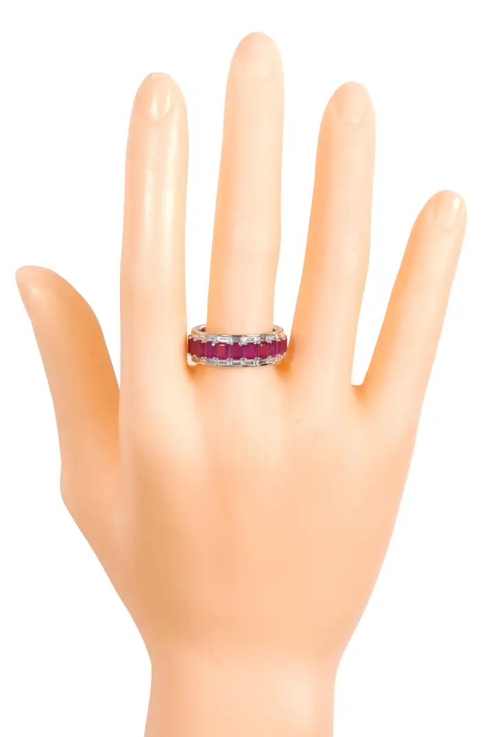 14K Solid Gold 6.85 Carat Ruby and Diamond Eternity Band Ring