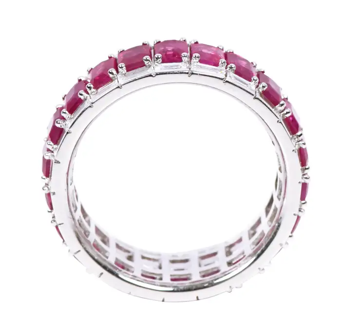 Luxurious 14K solid gold eternity band featuring 6.85 carats of rubies and diamonds—crafted for timeless brilliance, passion, and elegance.