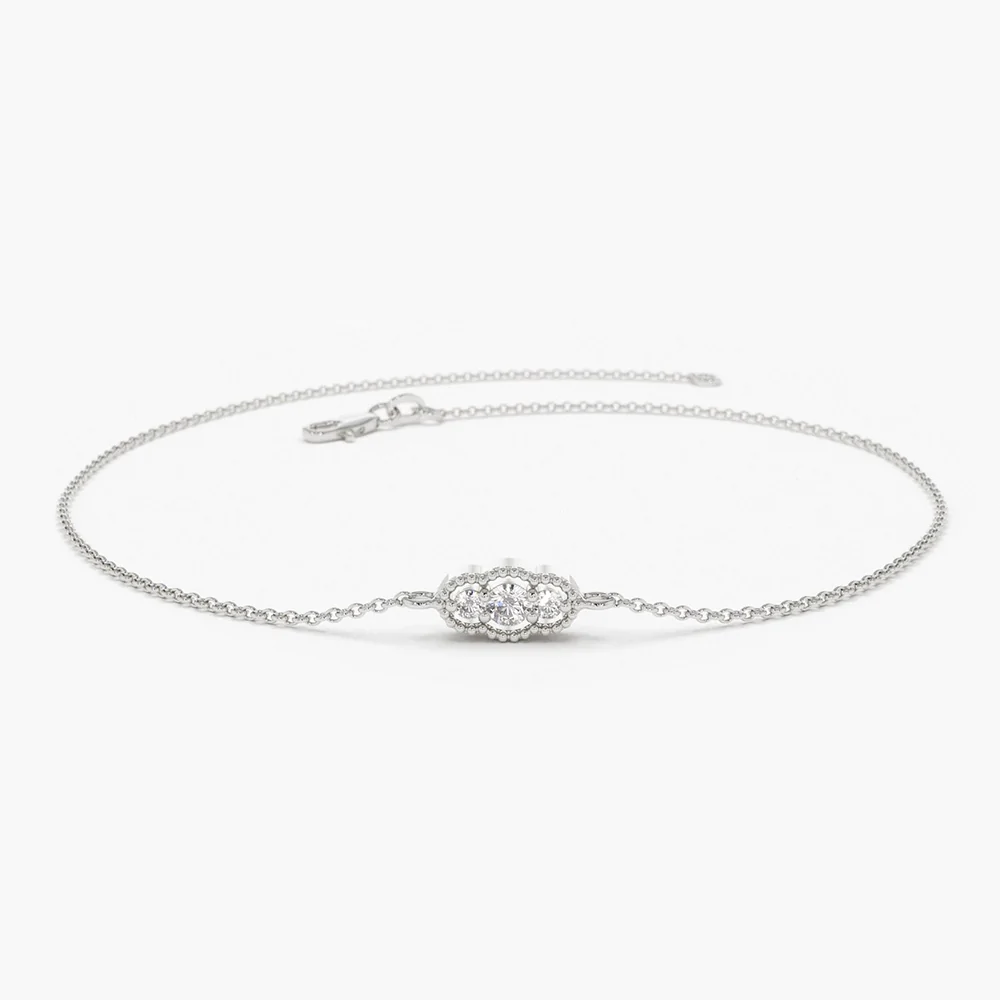 The 14K Solid Gold Art Deco Chain Bracelet is a sophisticated piece available in white, rose, and yellow gold. Featuring diamonds with VS clarity and F color, it offers a timeless design perfect for any occasion. BIS Hallmarked for authenticity, this bracelet ships within 10-12 business days, and customer support is available through live chats and video calls for your convenience.