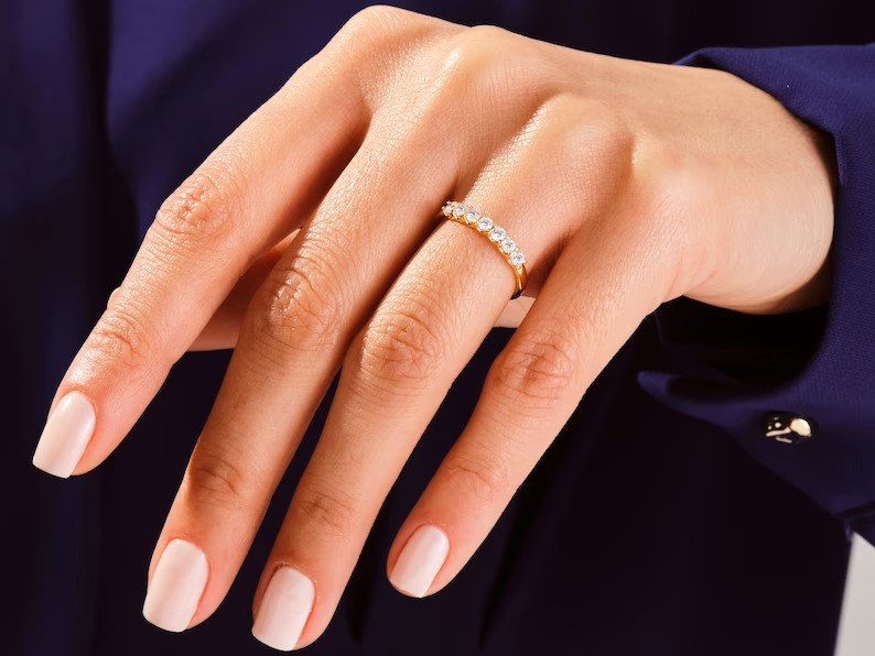 14K Solid Gold Brilliant Round-Cut Seven-Stone Anniversary Ring For Women
