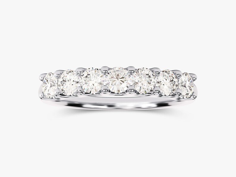 Mark your everlasting bond with the 14K Solid Gold Brilliant Round-Cut Seven-Stone Anniversary Ring, a timeless piece symbolizing each unforgettable moment shared together. This elegant ring features seven brilliant round-cut natural diamonds, masterfully set to create a radiant line of sparkle that represents love and unity.