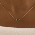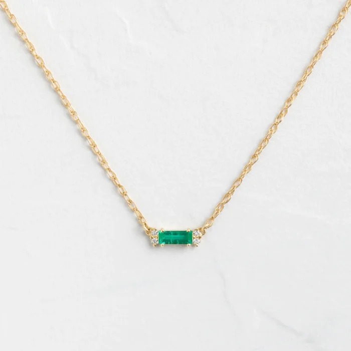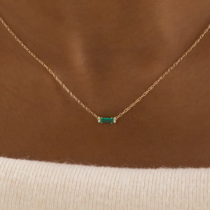 Delicate 14K solid gold necklace featuring vibrant emeralds in a spring-inspired design—crafted for natural elegance and timeless beauty.