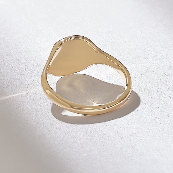 The solid 14k gold structure gives the ring a rich and substantial feel while still being comfortable for everyday wear. Whether you wear it as a signet on your pinky, a statement piece, or a unique gift, this ring blends luxury with meaning.