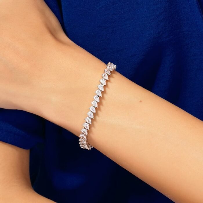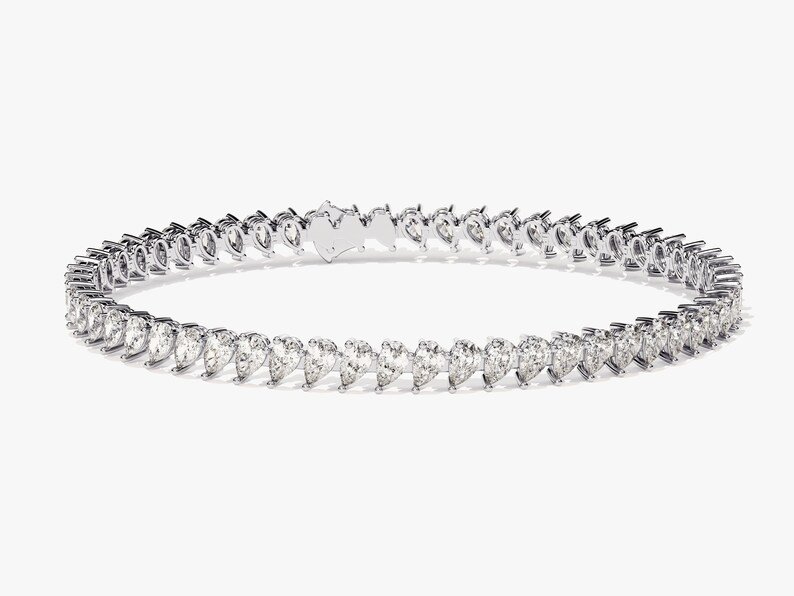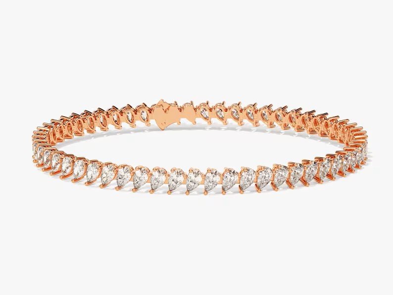 14K Solid Gold Moissanite Tennis Diamond Bracelet – It is a beautiful piece, designed to create elegance and style. Exquisite pear-shaped moissanite stones in this bracelet are meticulously set in a prong setting for maximum brilliance.