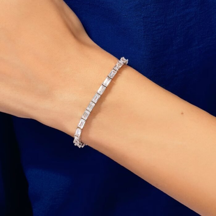 Introducing the 14K Solid Gold Moissanite Tennis Diamond Bracelet, the epitome of elegance and sophistication. This beautiful bracelet features lovely emerald-shaped moissanite stones, each carefully set in a secure prong setting to display their radiant brilliance.