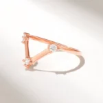 Meticulously crafted from 14K solid gold, this band is available in White, Rose, and Yellow Gold, allowing for effortless pairing with your existing jewelry. A shimmering array of natural diamonds, with a total carat weight of 0.18 ctw, lines the sharp V-shaped front, adding dimension and sparkle to the piece. Each diamond is hand-selected for its GH color and VS-SI clarity, ensuring radiant shine and excellent quality.
