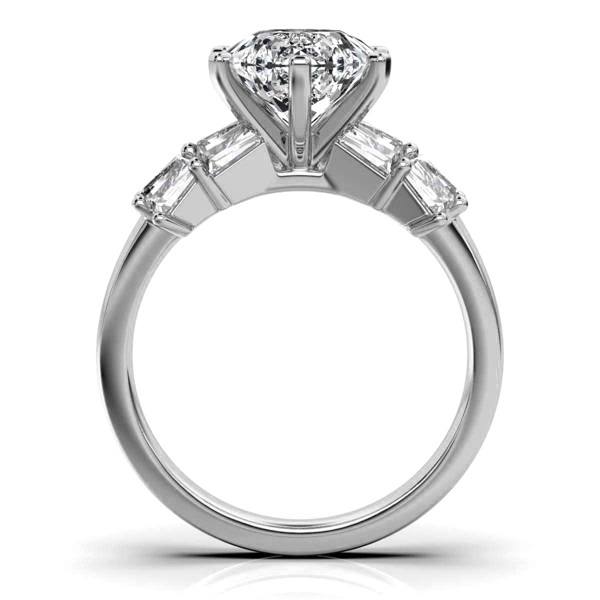 - Side Stones: 12 Moissanite Baguette Diamonds (0.84 ct total)