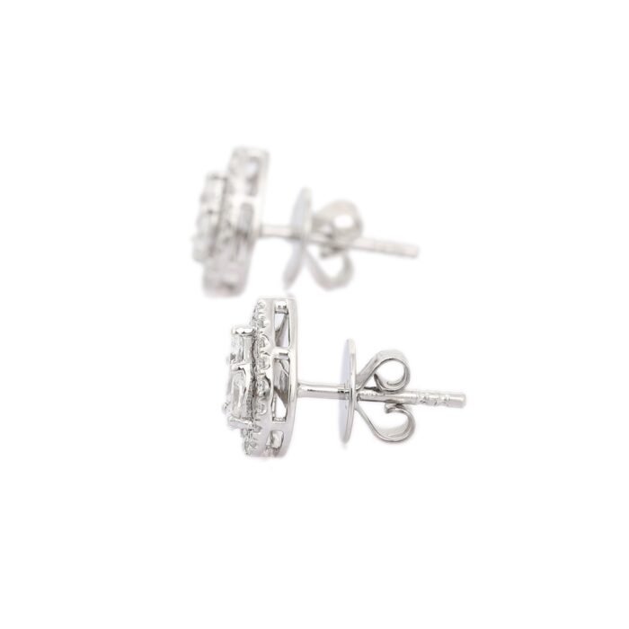 Add a touch of sophistication with our 14K solid white gold solitaire Natural diamond studs, featuring 50 round and pear-shaped diamonds totaling 0.46 carats. These elegant studs weigh 2.05 grams and are crafted to perfection. With their classic design and secure push-back mechanism, they are ideal for both everyday wear and special occasions.