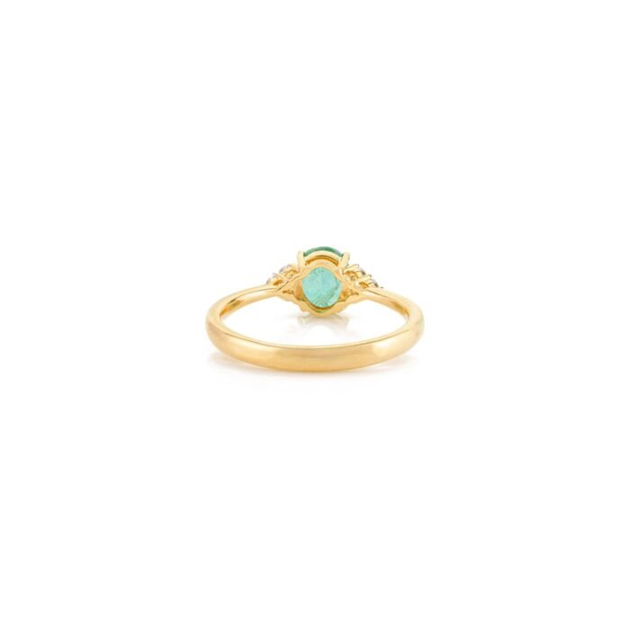 Surrounding the emerald are six round-cut diamonds, totaling 0.27 carats. These diamonds are meticulously set to accentuate the beauty of the emerald while adding sparkle and contrast to the overall design. The combination of emerald and diamonds creates a sophisticated and eye-catching contrast.