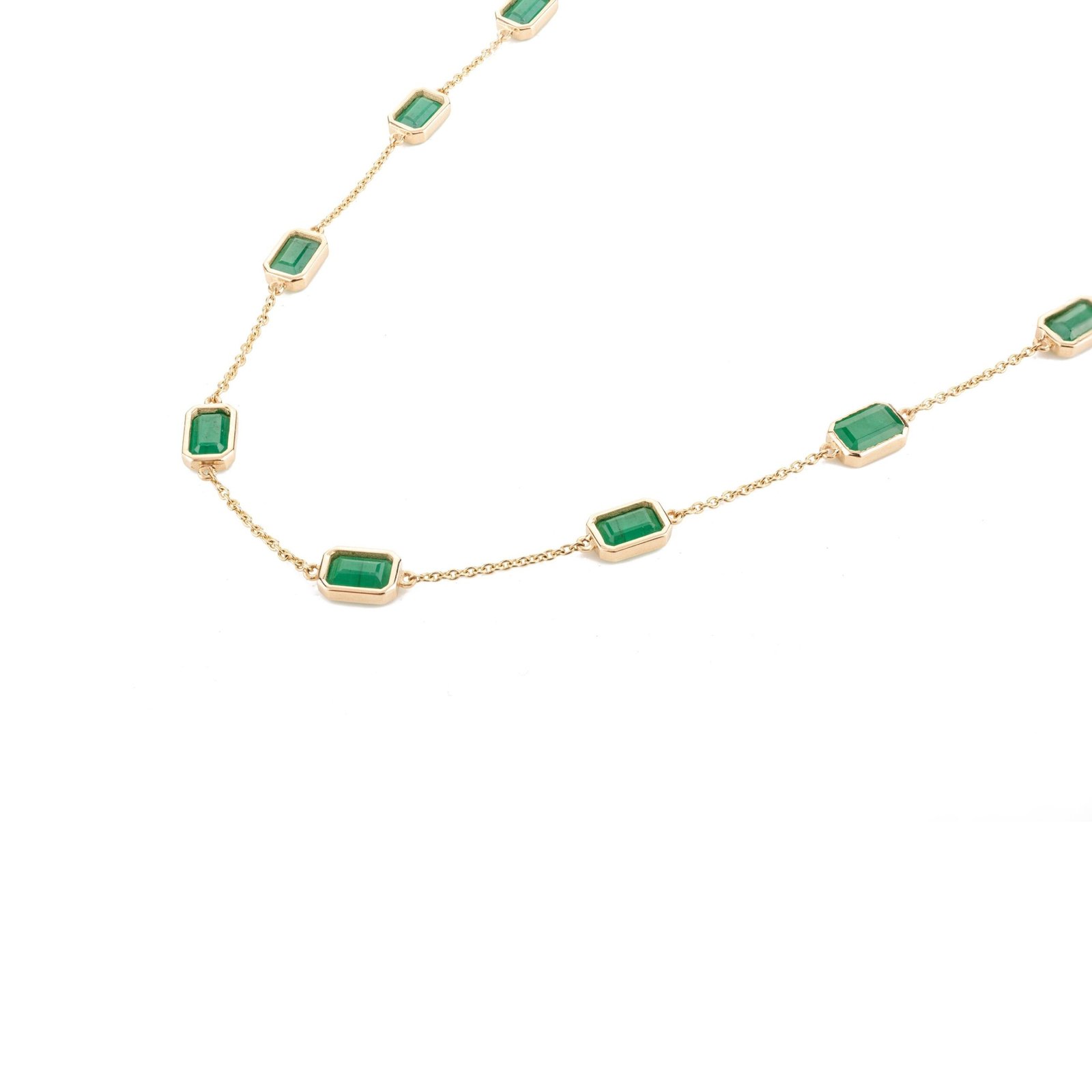 Indulge in the refined elegance of the 14K Solid Gold Emerald Station Chain Necklace, a masterpiece of luxury and craftsmanship. This exquisite necklace combines the richness of 14K solid gold with the vibrant allure of emeralds, creating a piece that is both sophisticated and captivating.