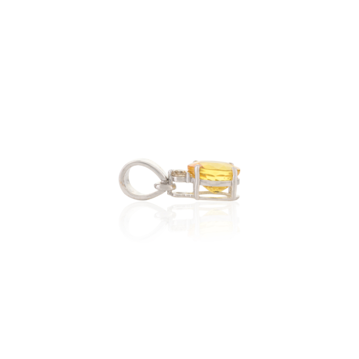 Enhancing the beauty of the yellow sapphire is a dazzling diamond, weighing 0.03 carats and measuring 1.7 mm. The diamond is meticulously set in a prong setting, adding a touch of sparkle and enhancing the pendant’s overall brilliance.
