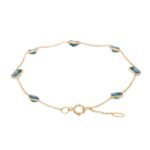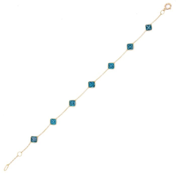 Elegant 14K solid gold bracelet featuring sparkling blue topaz gemstones. A timeless piece that adds cool brilliance and sophistication to any look.