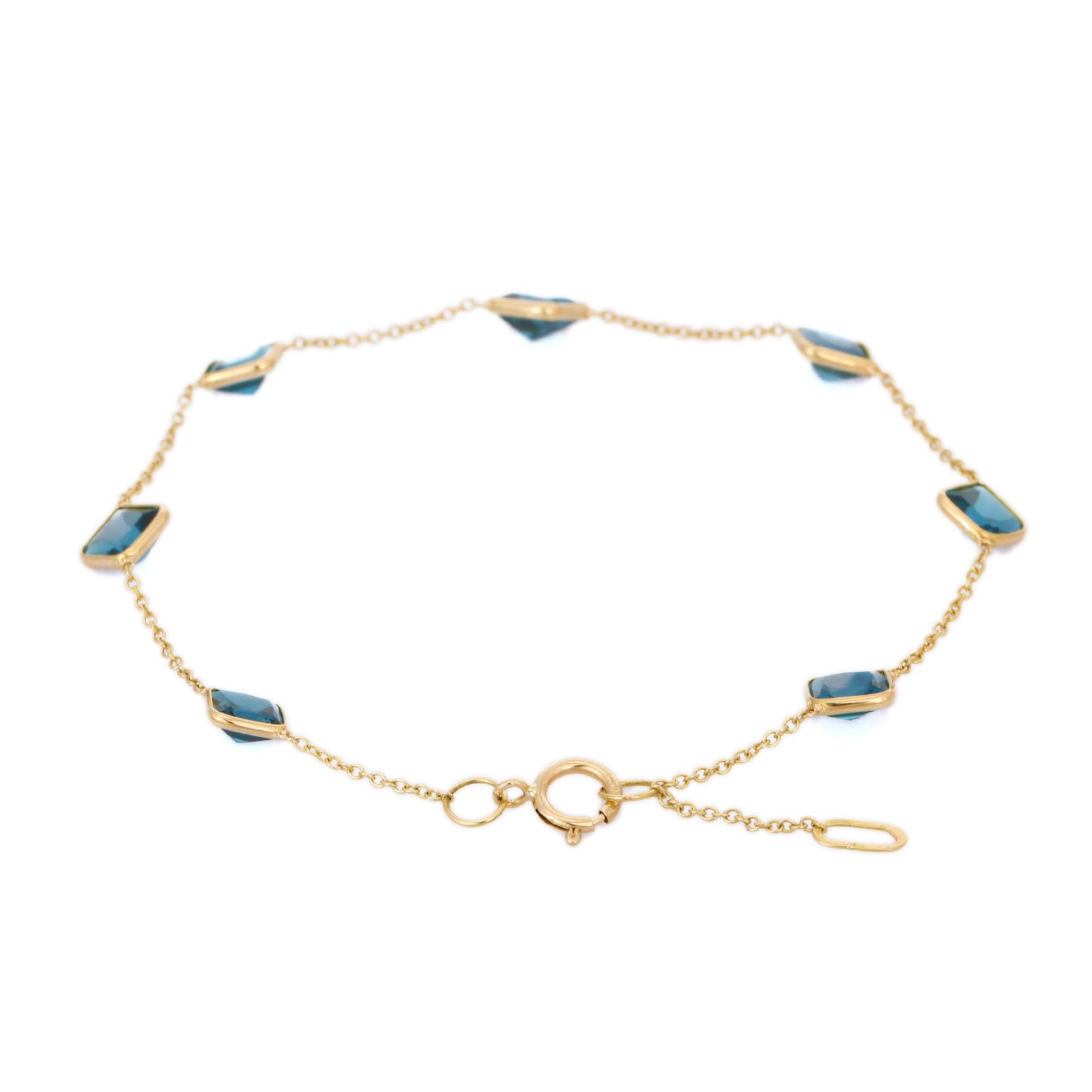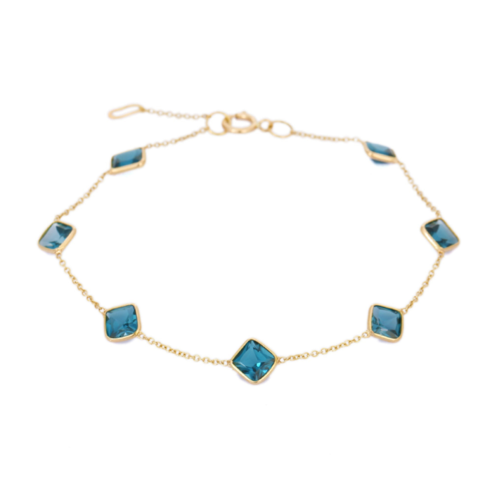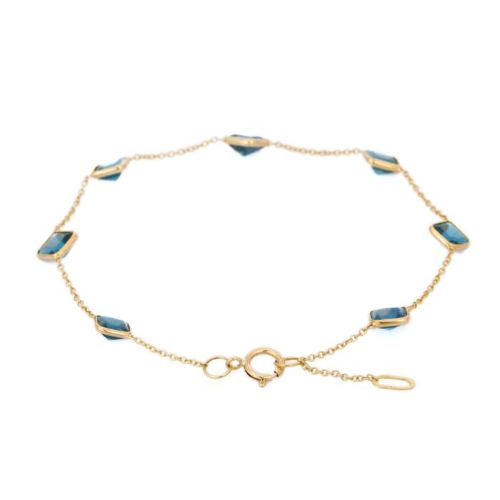Discover the enchanting beauty of our 14K Solid Gold Bracelet With Blue Topaz Gemstone. Crafted from 14K Solid Gold, this bracelet combines luxurious aesthetics with the captivating allure of natural gemstones.
