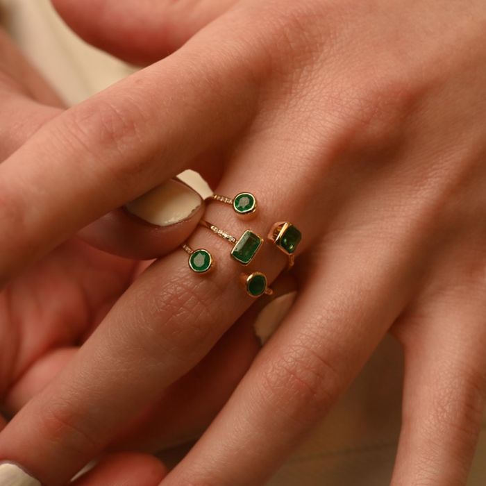 5 reviews for 14K Solid Gold Emerald Adjustable Ring