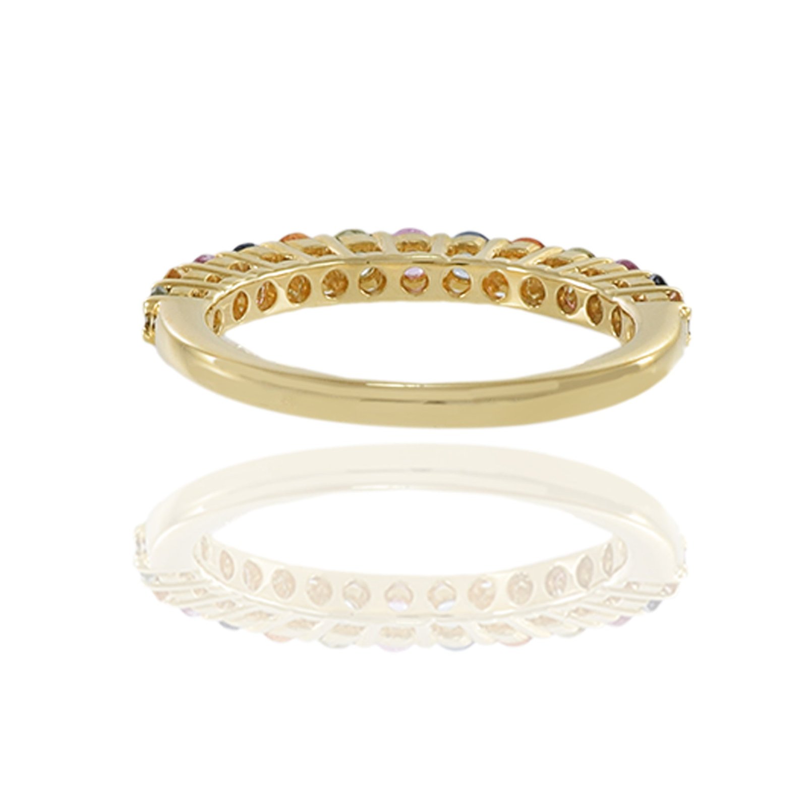 Designed for comfort and everyday elegance, this multi-color sapphire band is a versatile addition to any jewelry collection. Whether given as a gift, an anniversary ring, or a fashion-forward accessory, this ring is a true celebration of beauty, color, and fine craftsmanship.