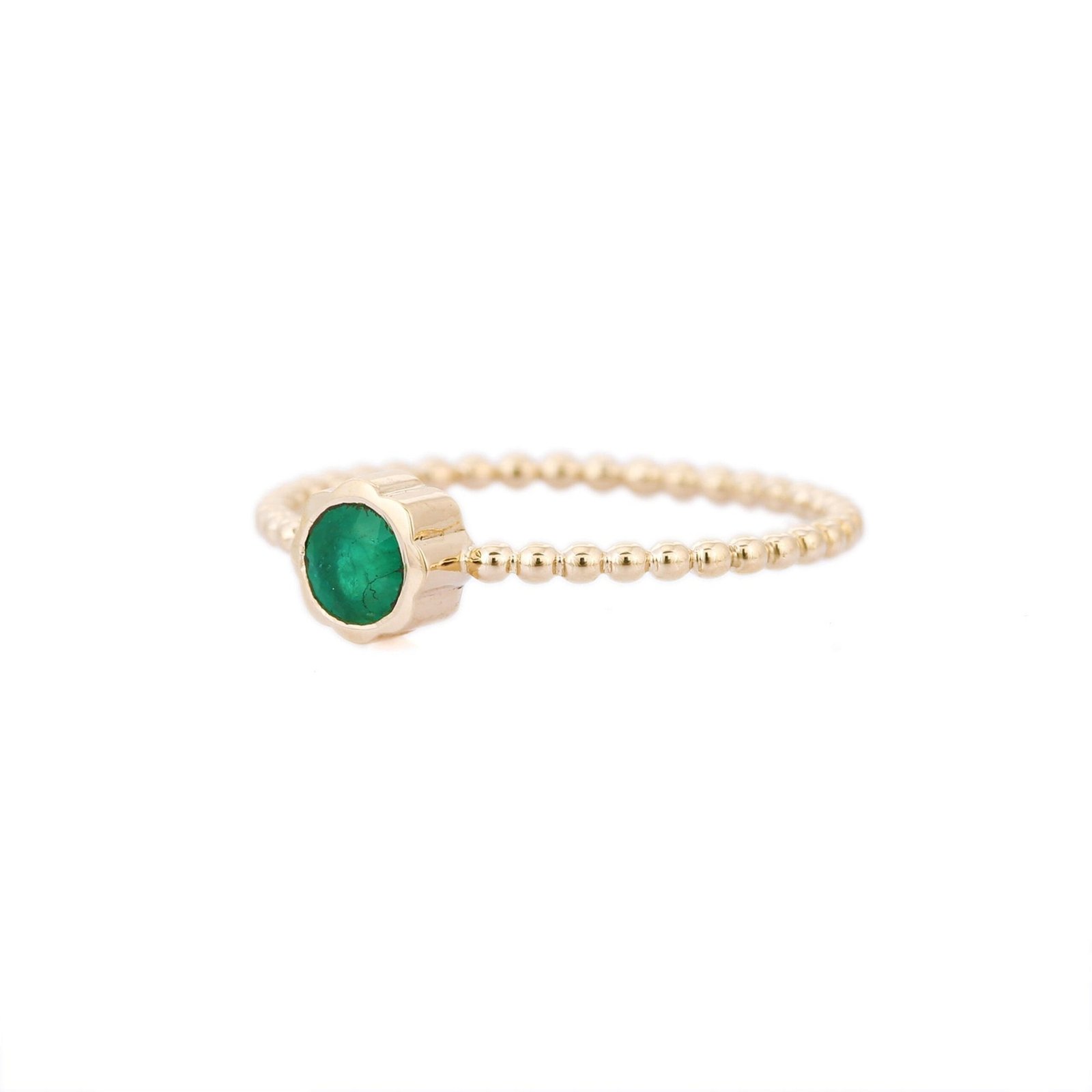 Elegant and timeless, this 14K solid gold ring features a vibrant round emerald—perfect for adding a classic touch to any jewelry collection.