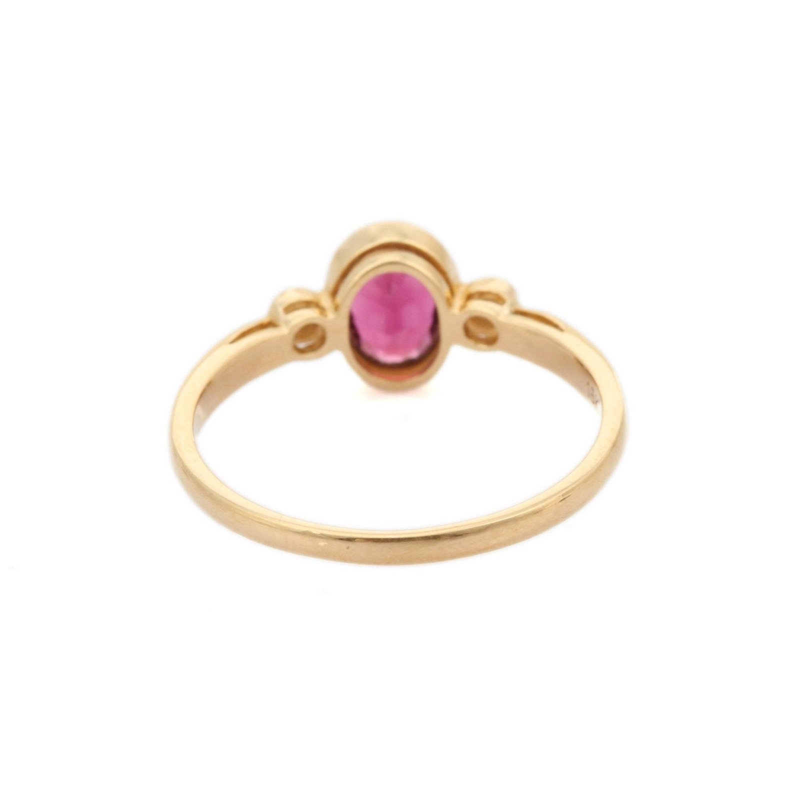 Weighing 2.148 grams, this ring is lightweight and comfortable to wear, making it perfect for everyday use or special occasions. The bezel setting not only ensures the gemstones are securely held in place but also offers a modern and sleek appearance, emphasizing the natural beauty of the tourmaline and diamonds.