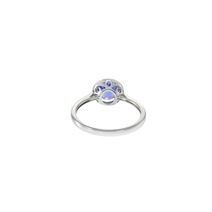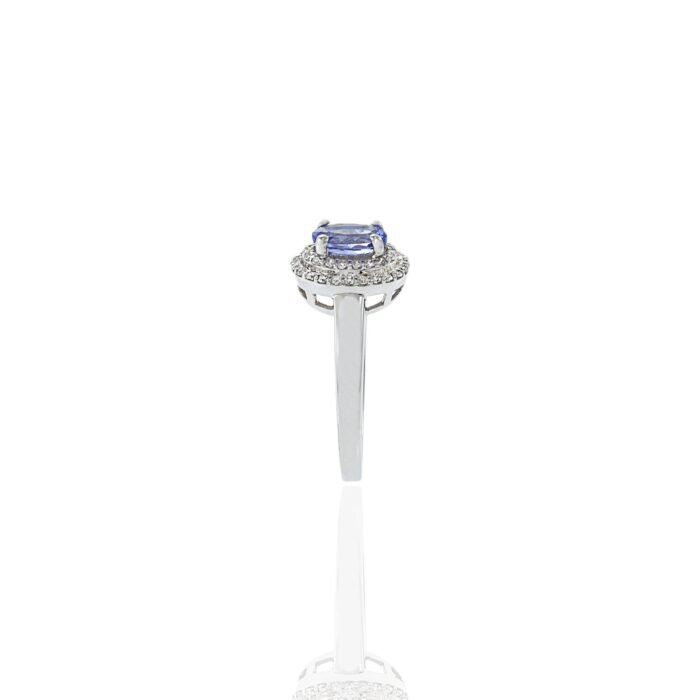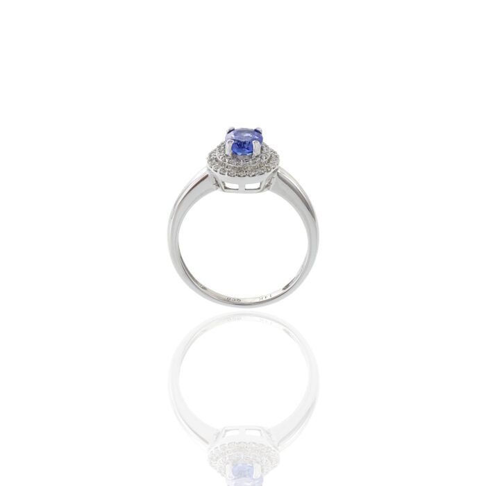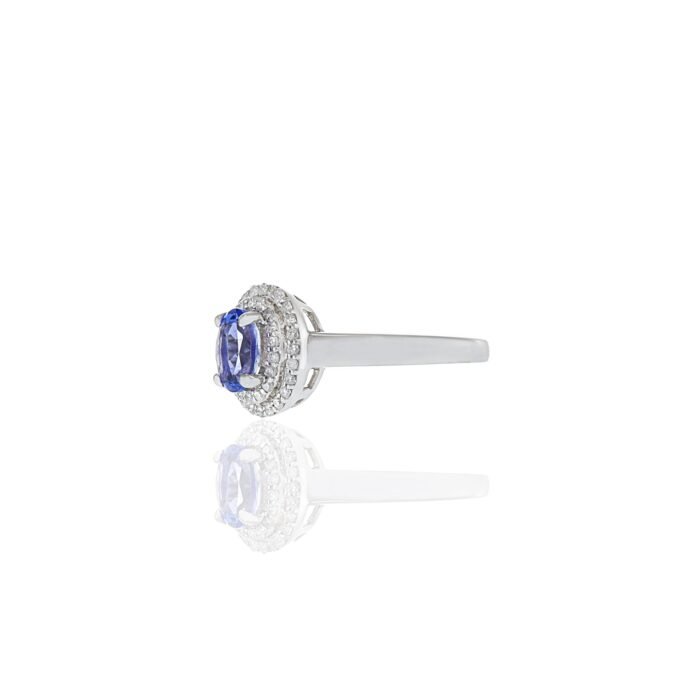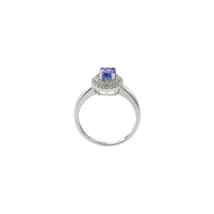 - Design:Â Elegant halo setting that enhances the central tanzanite