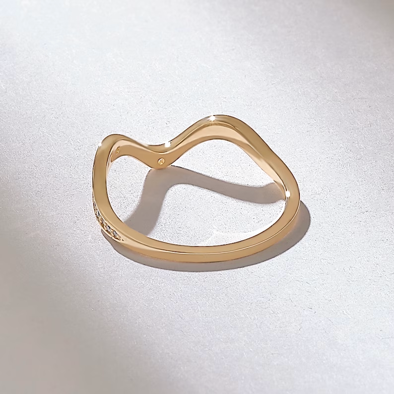 18k Natural Diamond Alternating Pave Stacking Ring: Tiny Zigzag Band for Daily Wear