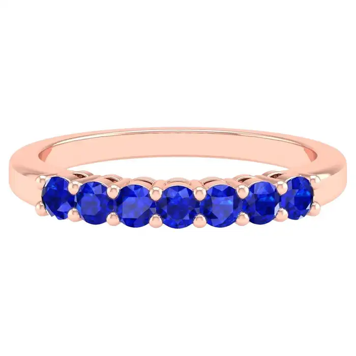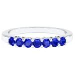 The 0.5 carats total, it’s a captivating half-eternity band, weighing 2.71 grams. Its rich blue hues make for elegant sophistication while the sleekness of its design is a perfect contrast to add to its modern charm. Weighing in at 2.61 grams, this ring presents a comfortable yet substantial weight against the finger.