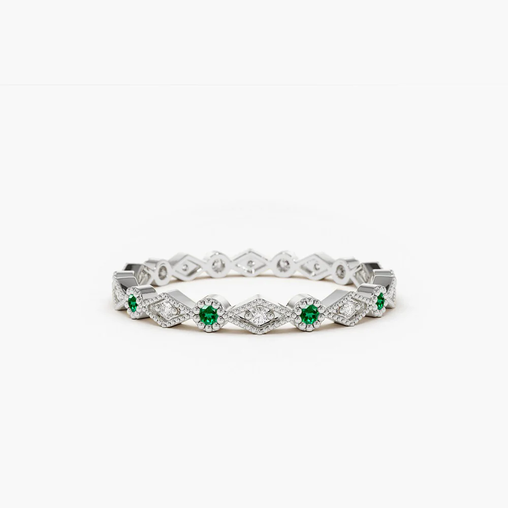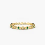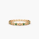 14K Solid Gold Alternating Emerald Diamond Eternity Band