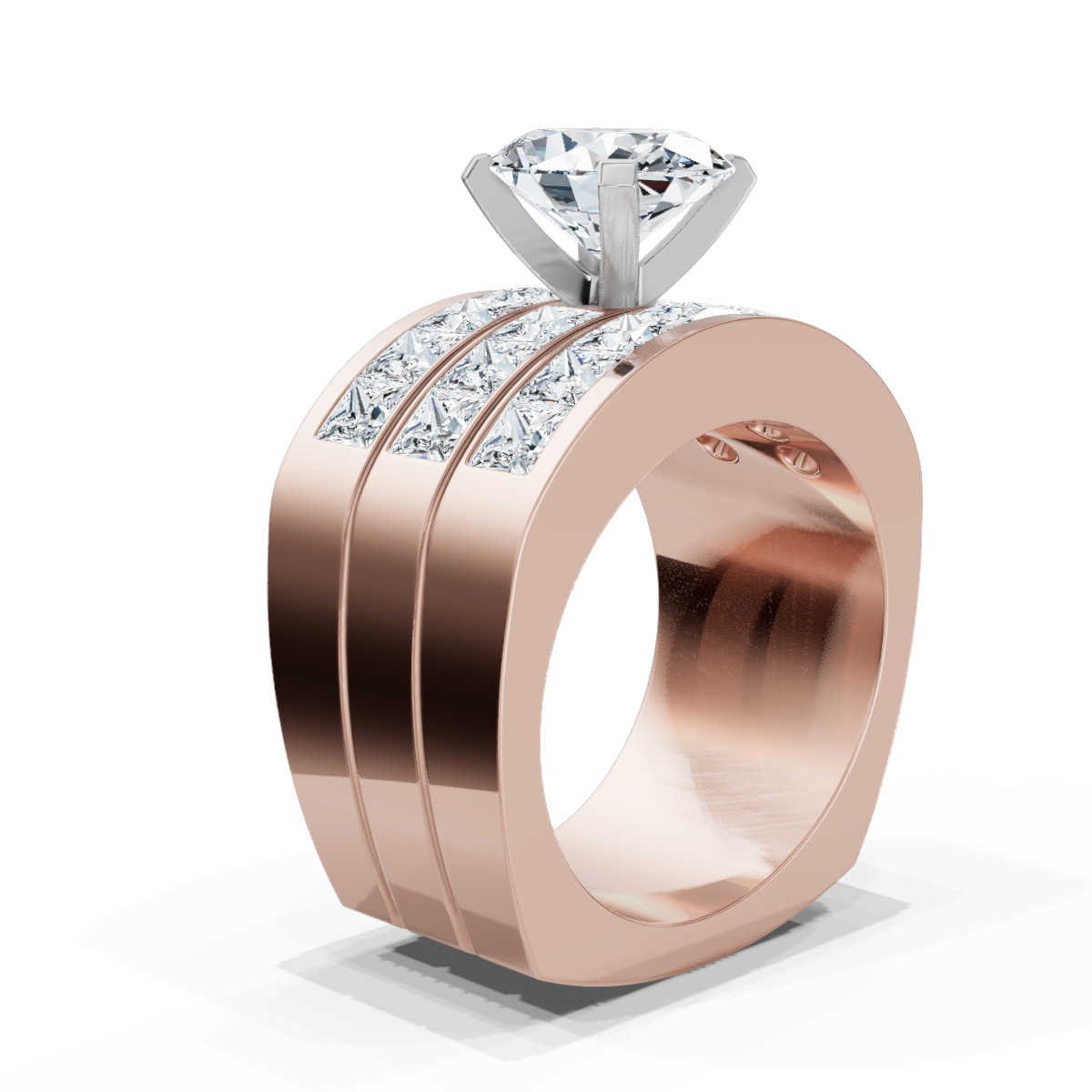 Accentuating its splendor, 20 princess-cut Moissanite diamonds totaling 2.4 carats are meticulously set along the wide 9mm solid gold band, adding a touch of regal charm and unmatched sparkle. The comfort-fit design ensures a luxurious and effortless wear, making it a perfect choice for engagements, anniversaries, or special celebrations.