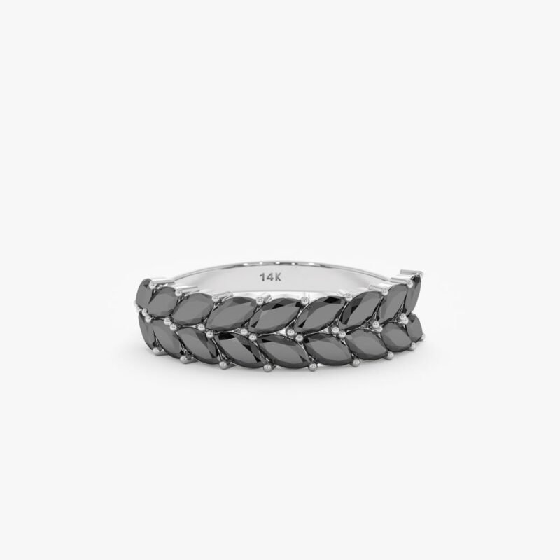 14K Solid Gold Black Natural Diamond Half Eternity Ring
