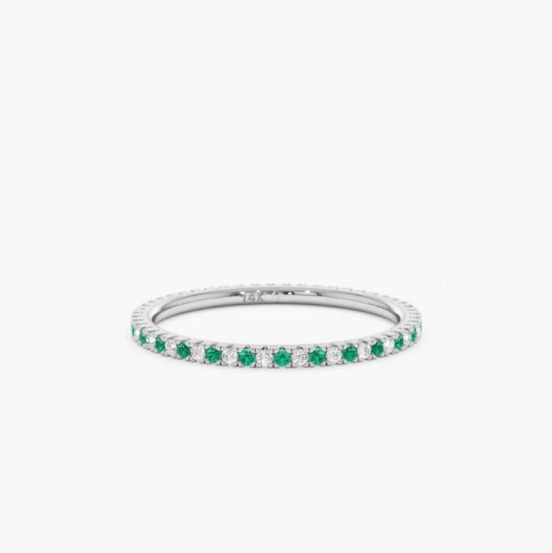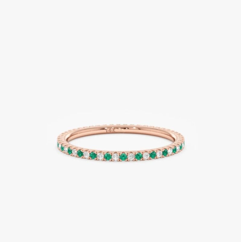 14K Solid Gold Emerald and Natural Diamond Eternity Ring