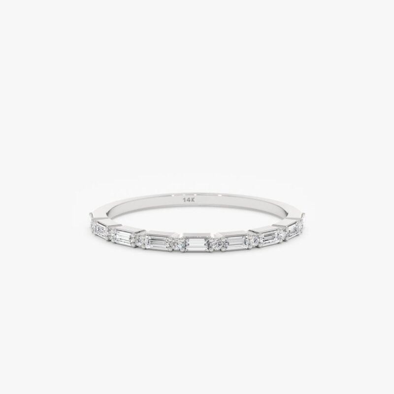 14K solid gold half eternity ring with 0.23 ct GH/VS-SI natural diamonds in a modern dot-dash pattern. 1.4 mm band. GIA & BIS certified.
