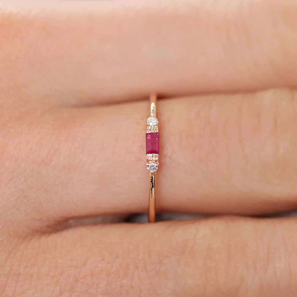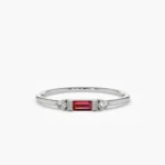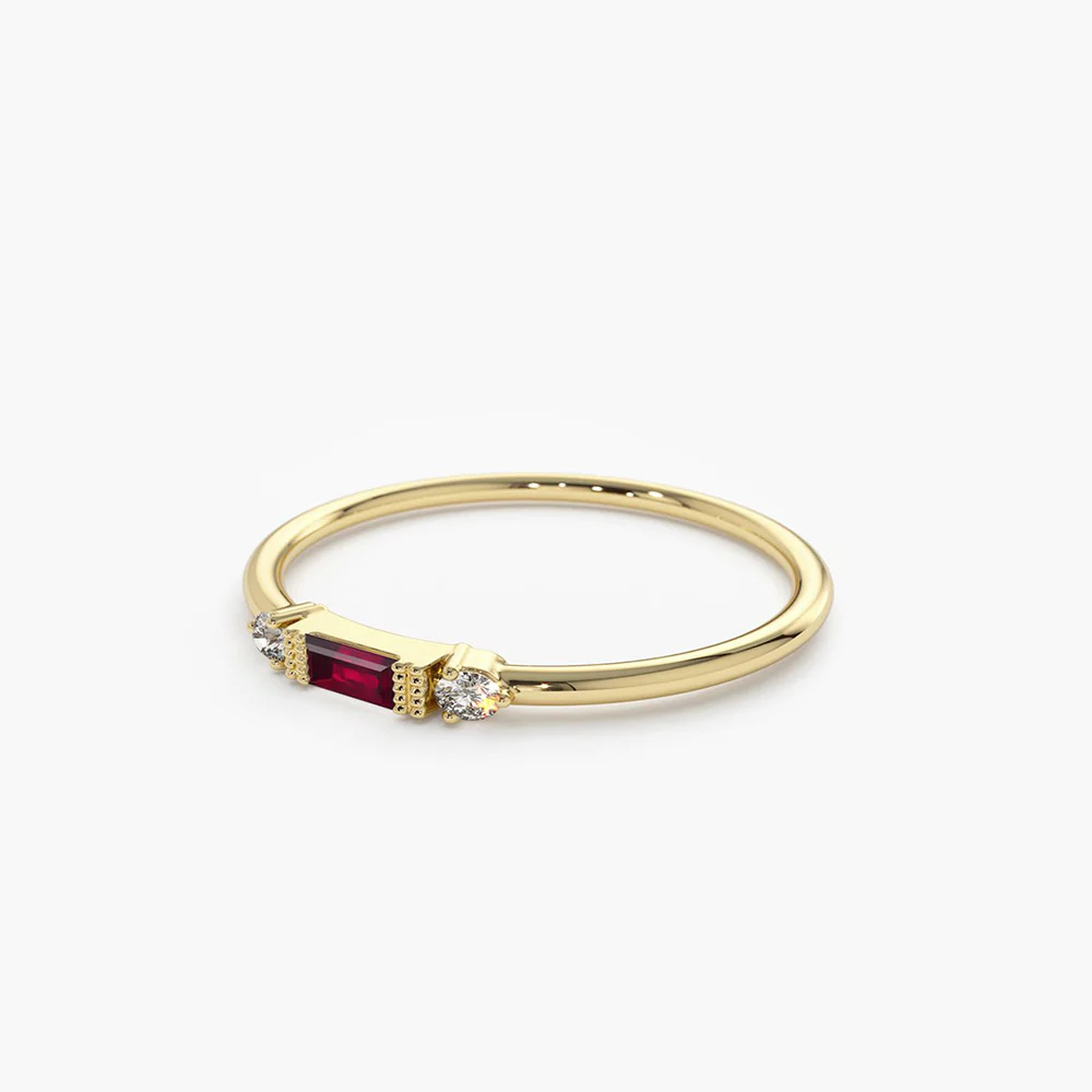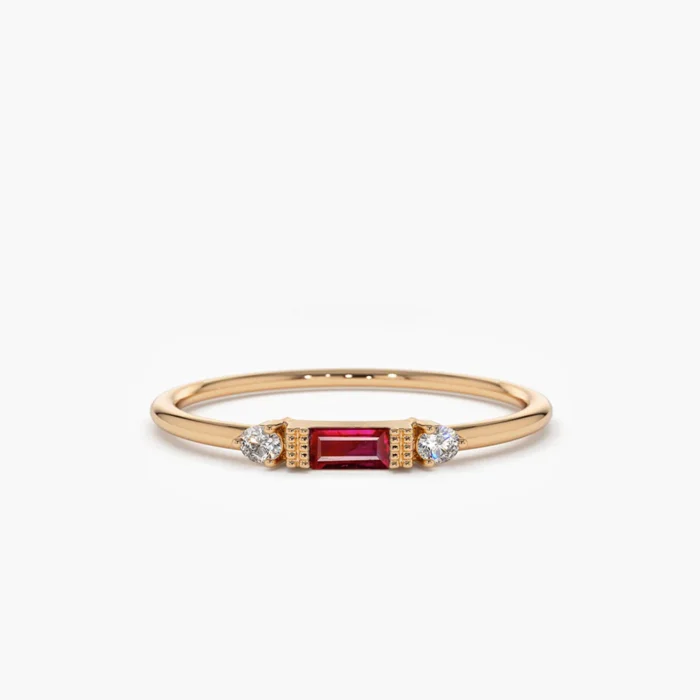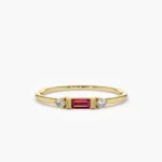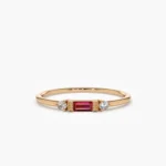 18K Solid Gold Baguette Ruby With Moissanite Diamond Ring