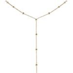 18k Solid Gold Bezel Emerald Lariat Chain Necklace