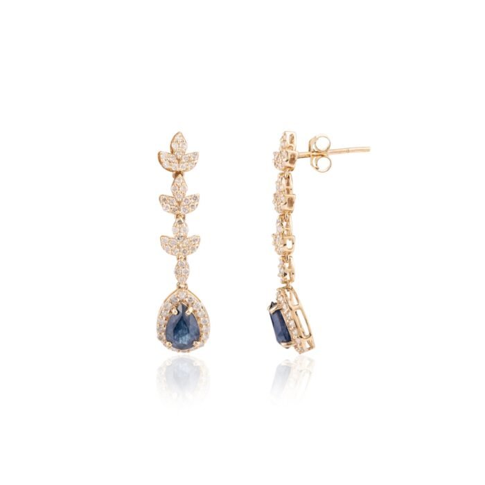 Be the first to review “18k Solid Gold Blue Sapphire Diamond Dangle Earrings” Cancel reply
