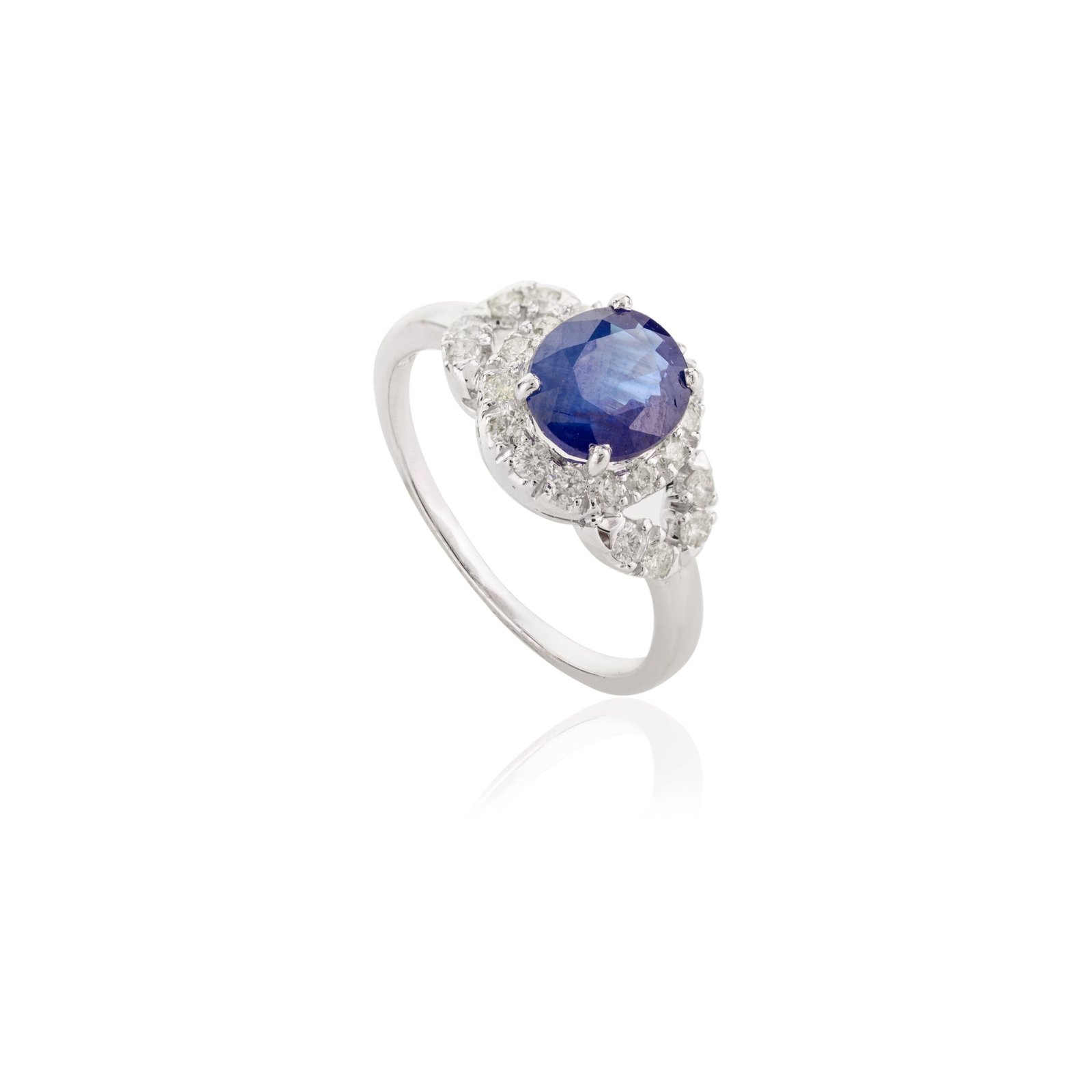 Experience sophistication with the 18k Solid White Gold Blue Sapphire Diamond Statement Ring, showcasing a stunning 1.51 carat oval blue sapphire complemented by 0.37 carats of diamonds in white gold.