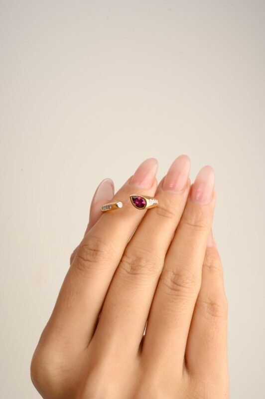 14K Solid Gold Modernist Pear Cut Ruby Open Ring