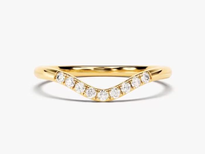 14K solid gold V-shaped nesting ring with 0.14ct natural diamonds. Elegant, stackable, and perfect for contouring engagement rings.