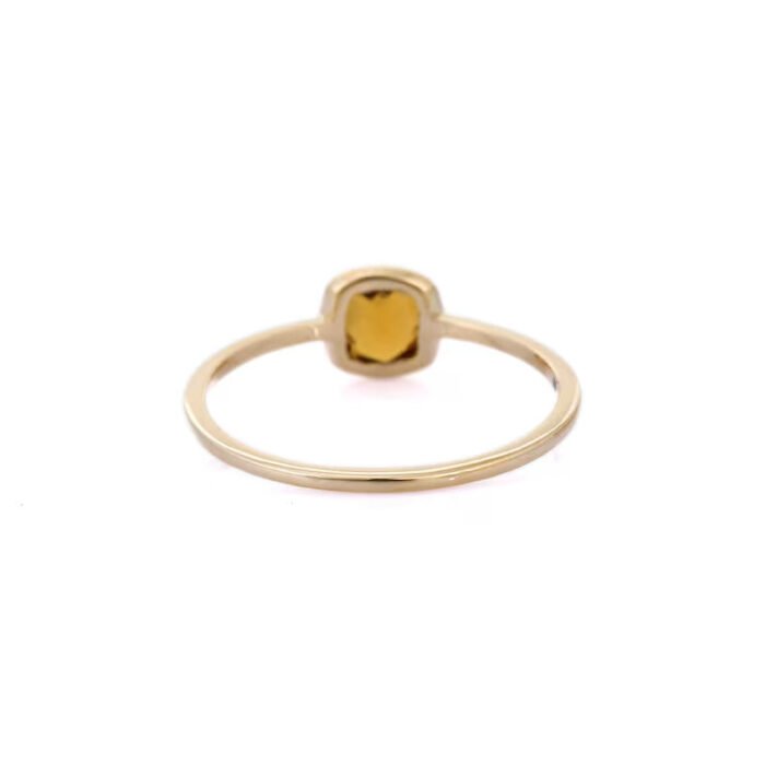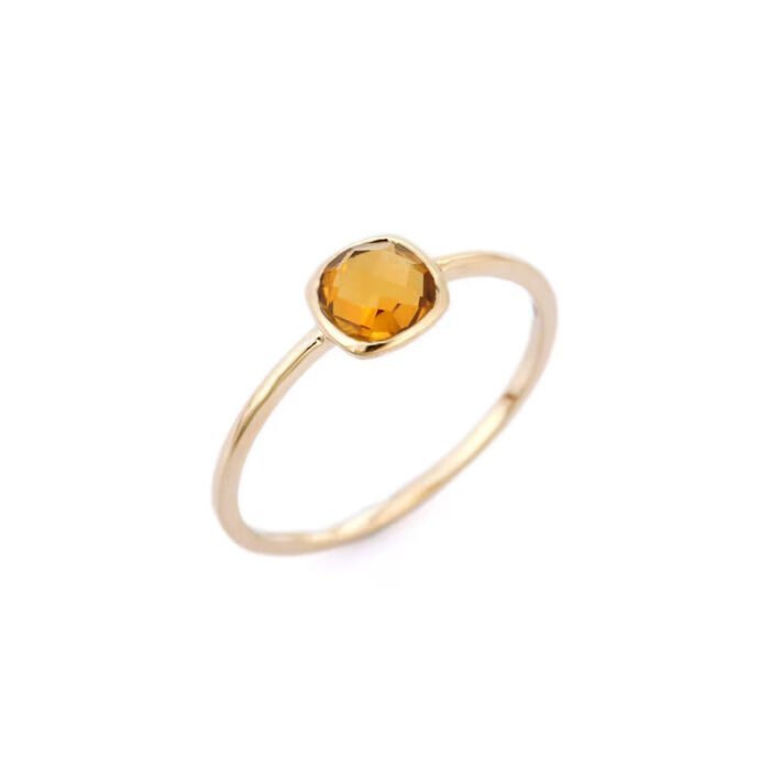 A delicate 18k solid gold ring featuring a cushion-cut citrine, offering a minimalist and elegant design perfect for everyday wear or stacking.