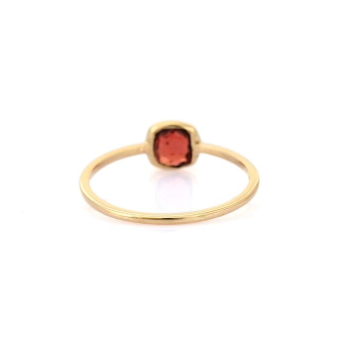 A striking 18k solid gold ring featuring a vibrant cushion-cut garnet, offering a timeless and elegant design perfect for any occasion.
