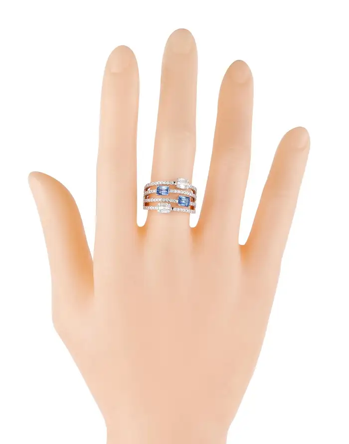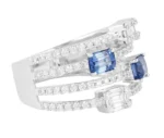 Made from 18k Solid Gold , the ring is exquisite and strong, giving extra shine to the gemstones. The total diamond weight on this ring is 0.84 carats, along with 0.98 carats of sapphires, which makes this ring shine with elegance and sophistication on any occasion.