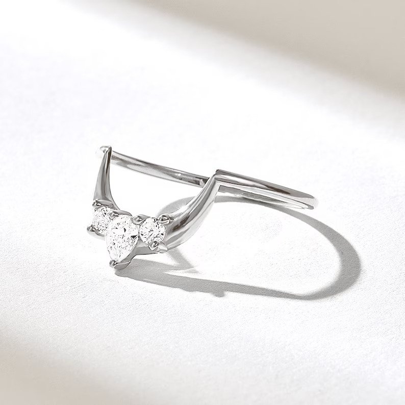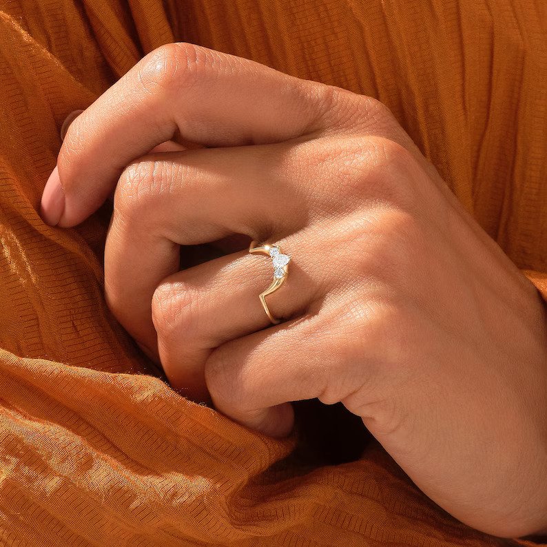 Dainty 18k gold tiara arch ring with 0.21 ct GH VS-SI natural diamonds. Pear contour design. BIS Hallmarked & GIA certified.