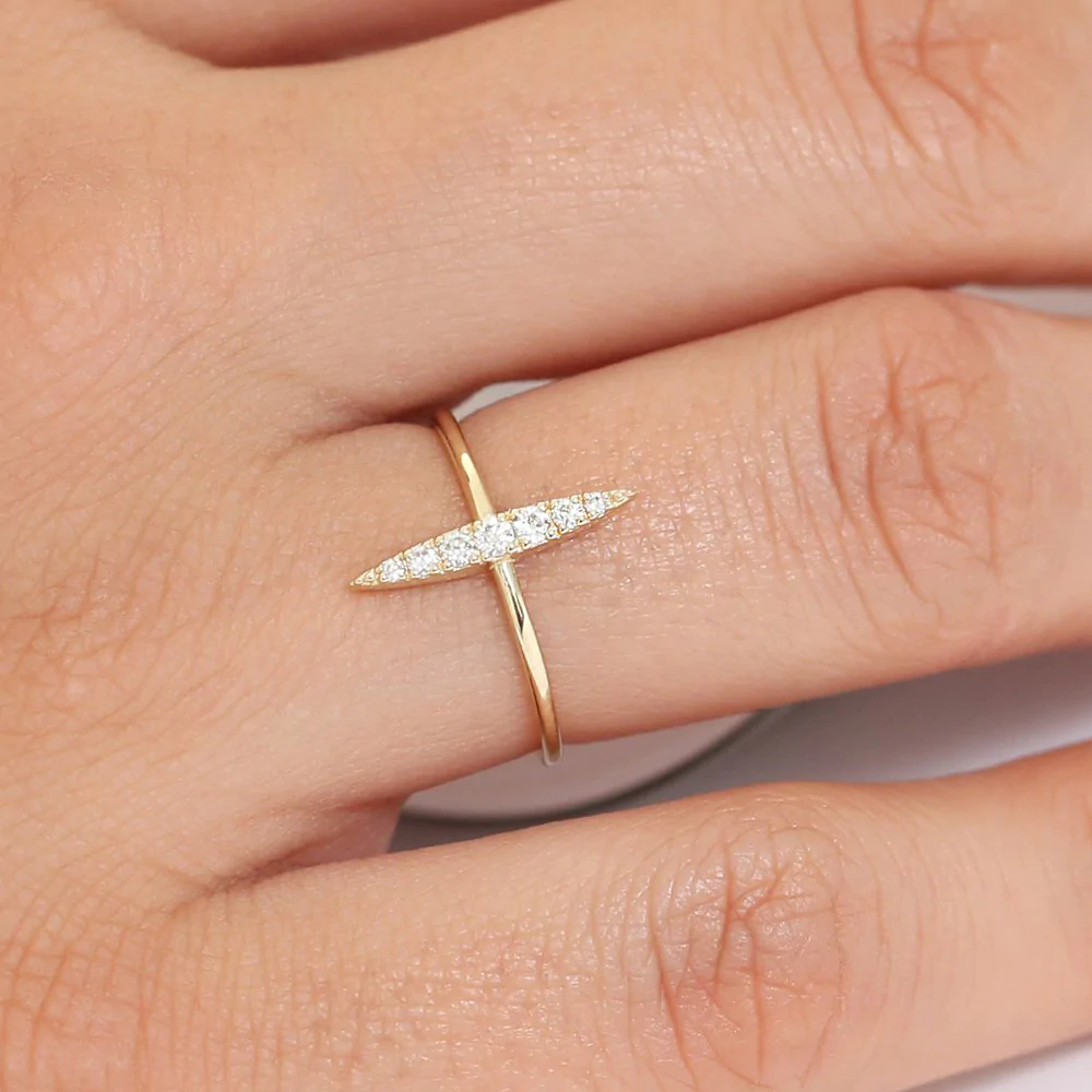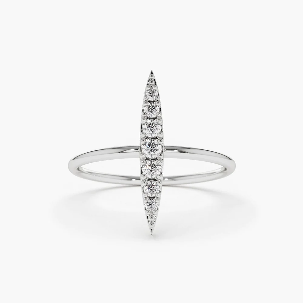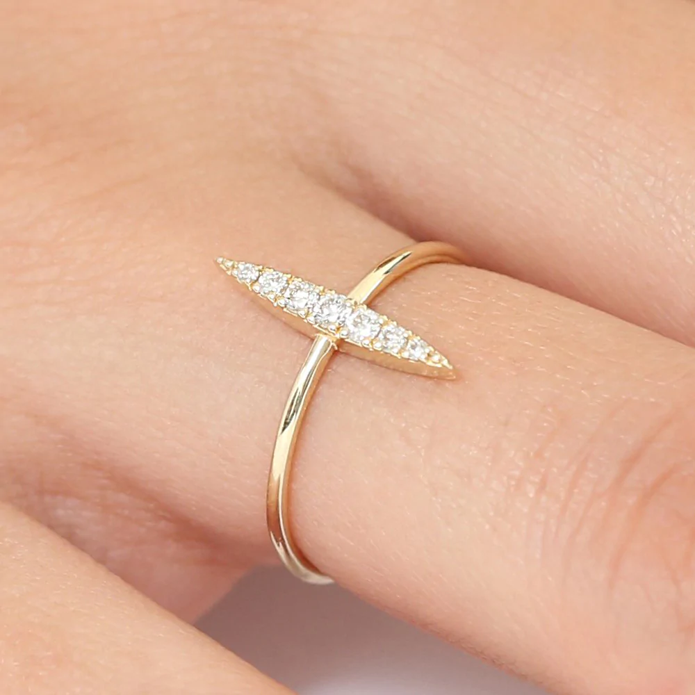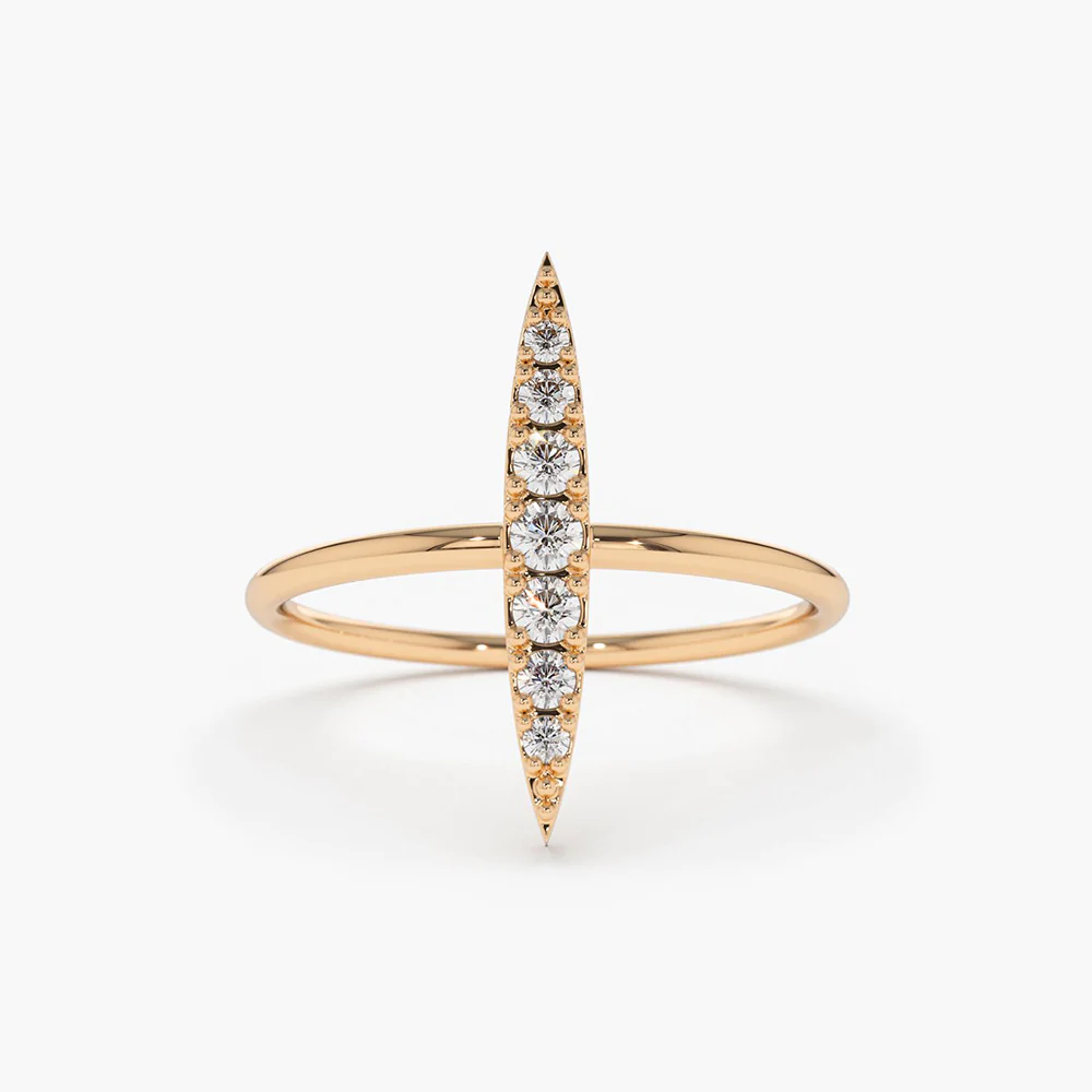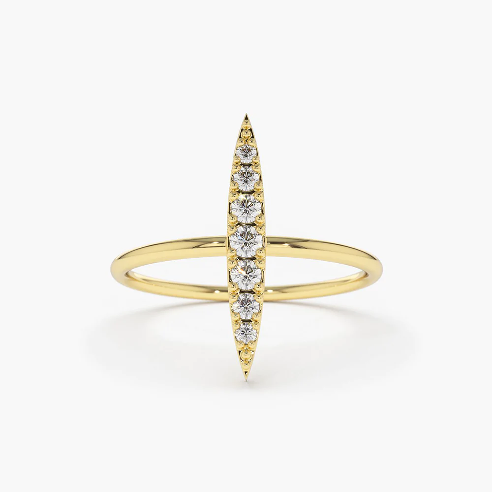 18K Solid Gold Elongated Micro Pave Diamond Ring