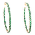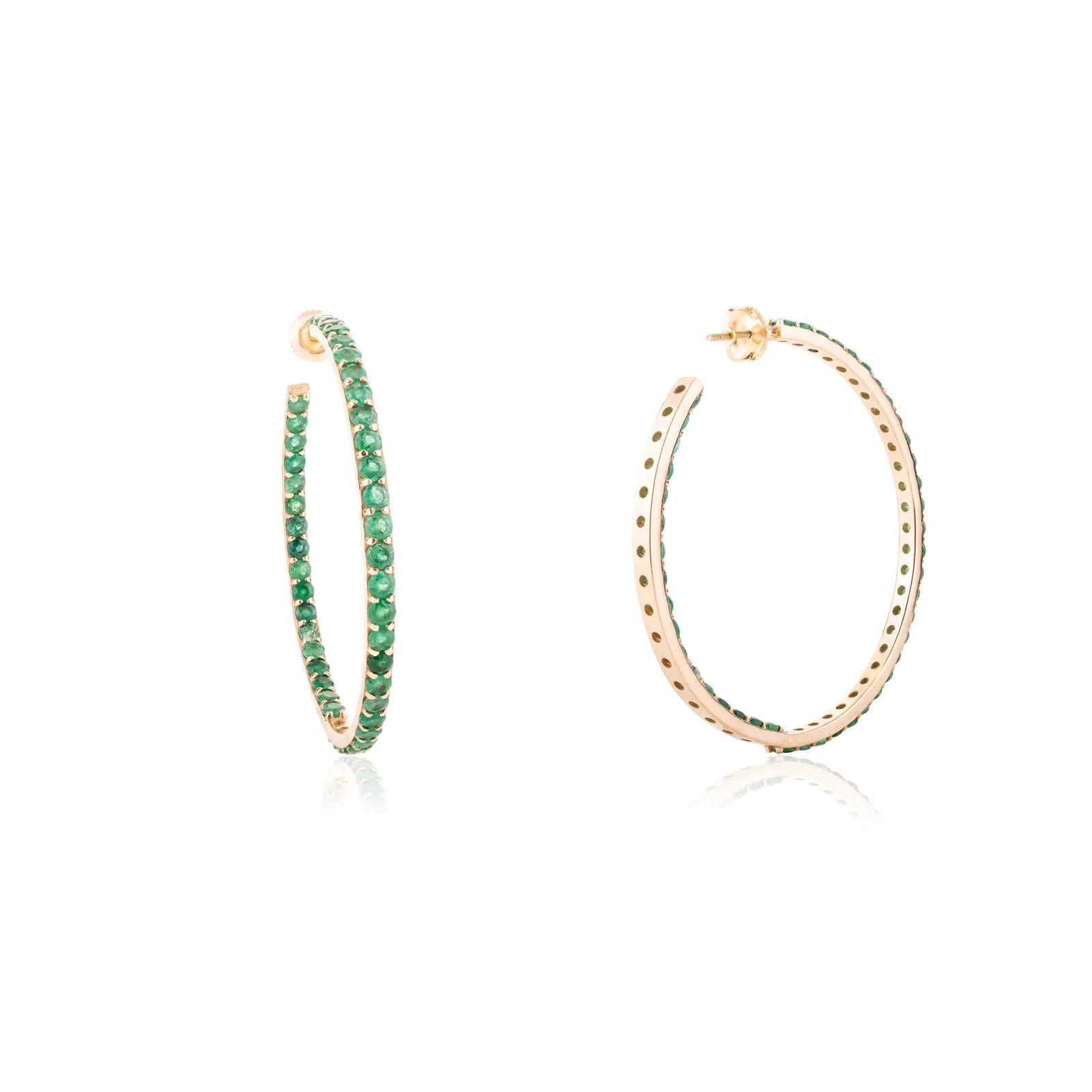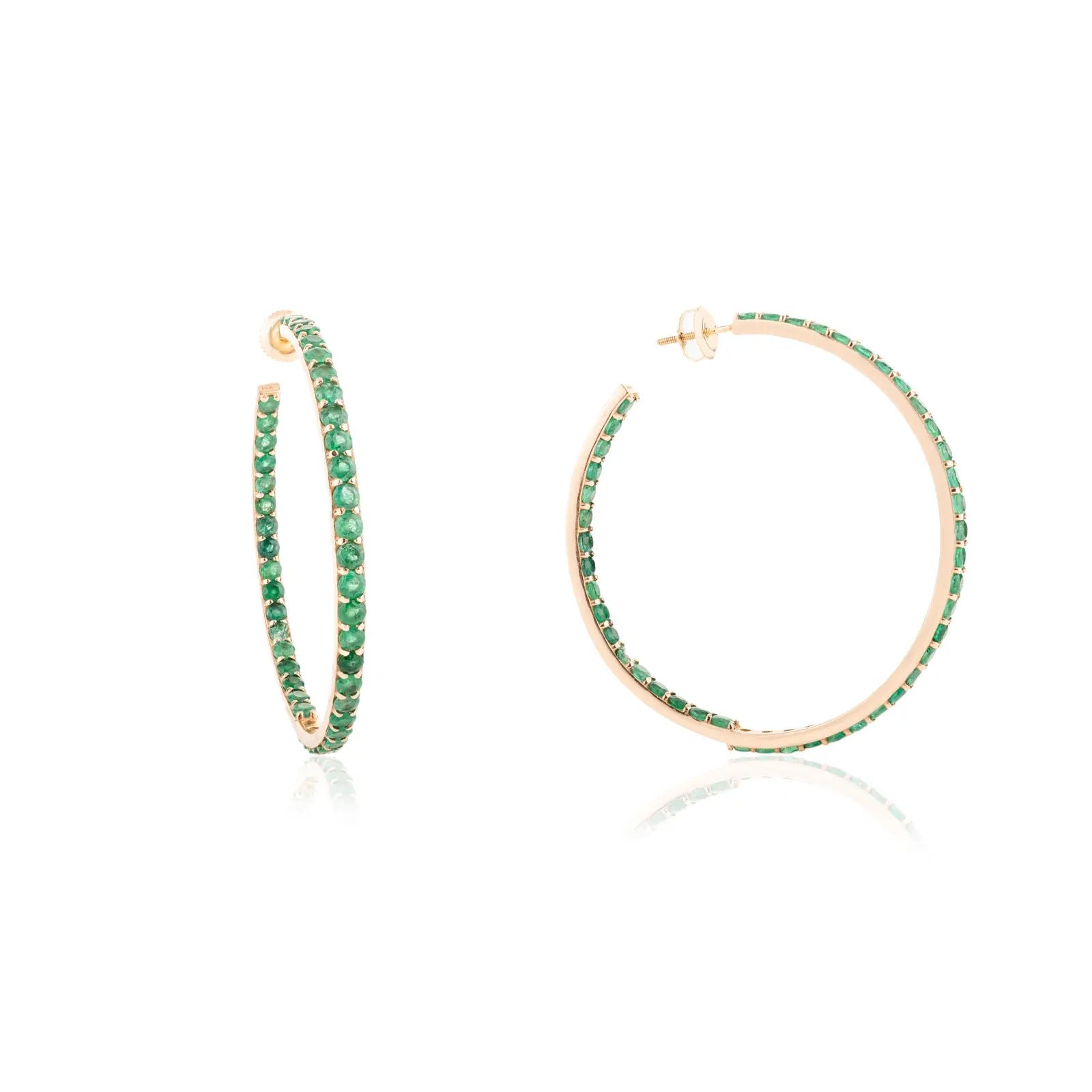 Make a bold statement with the 18k Solid Gold Emerald Big Hoop Earrings, showcasing 7.33 carats of vibrant emeralds in a luxurious hoop style