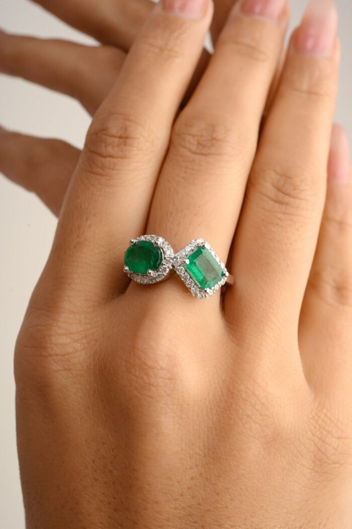 Ideal as a symbol of love and commitment or as a cherished addition to any jewelry collection, the 18k Solid Gold Emerald Diamond Toi et Moi Ring combines timeless elegance with exceptional craftsmanship. Whether worn as an engagement ring, anniversary gift, or statement piece, this ring radiates beauty and sophistication, making it a treasured heirloom for years to come.