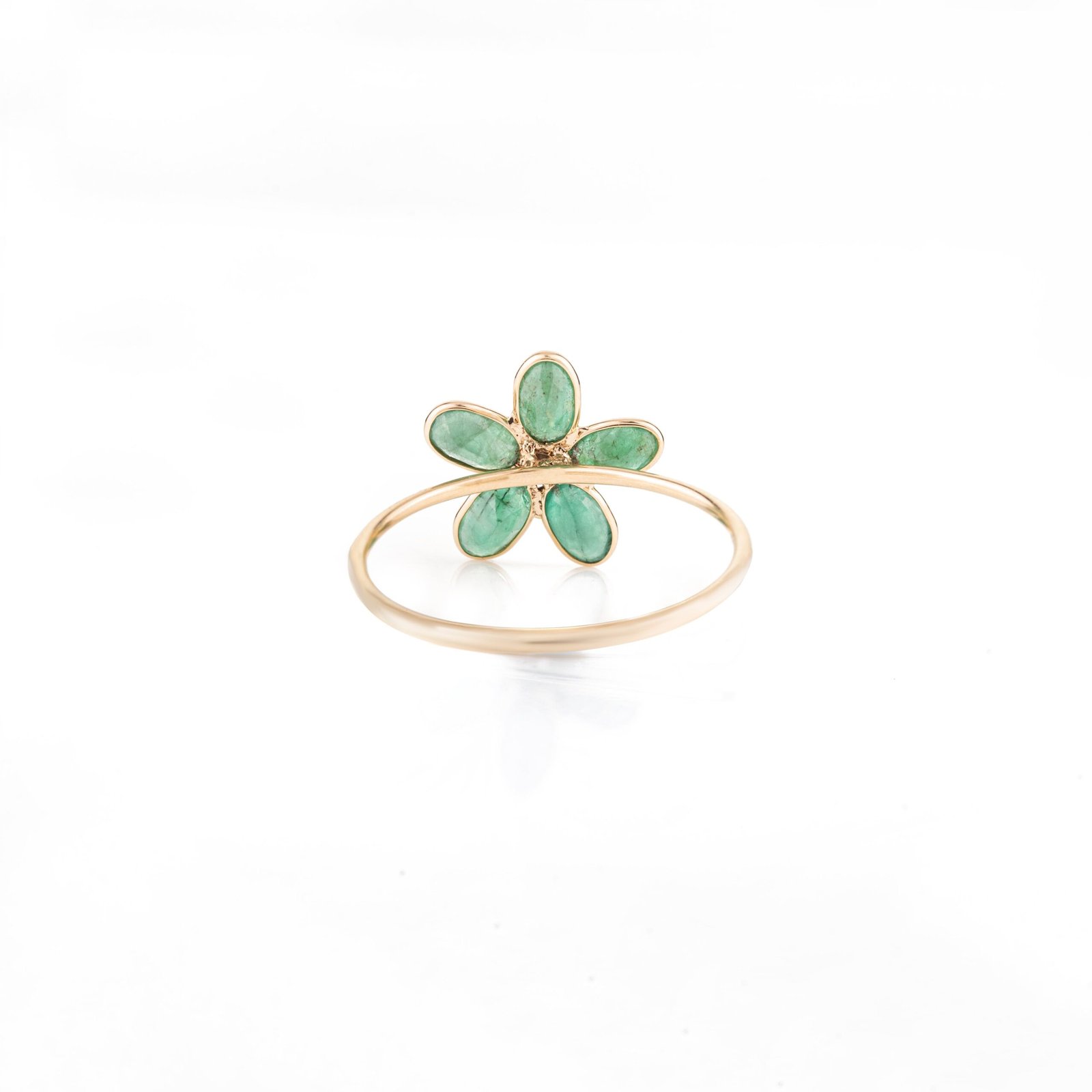 Delicate 14K solid gold ring featuring a beautiful flower-shaped emerald design, perfect for adding a touch of nature-inspired elegance.