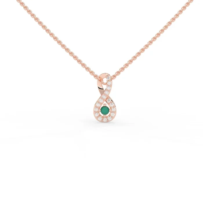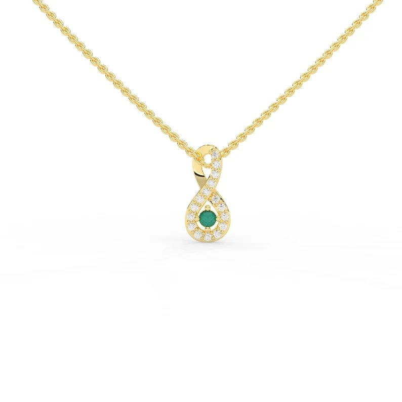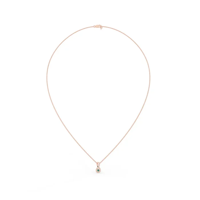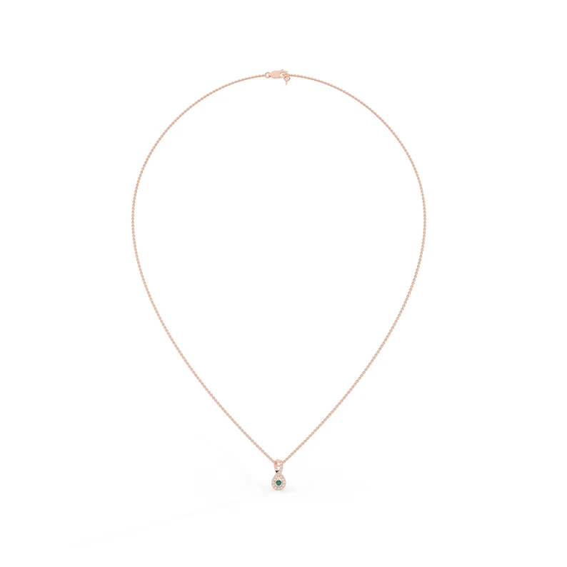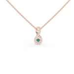 18k Solid Gold Emerald Necklace with Halo Diamonds