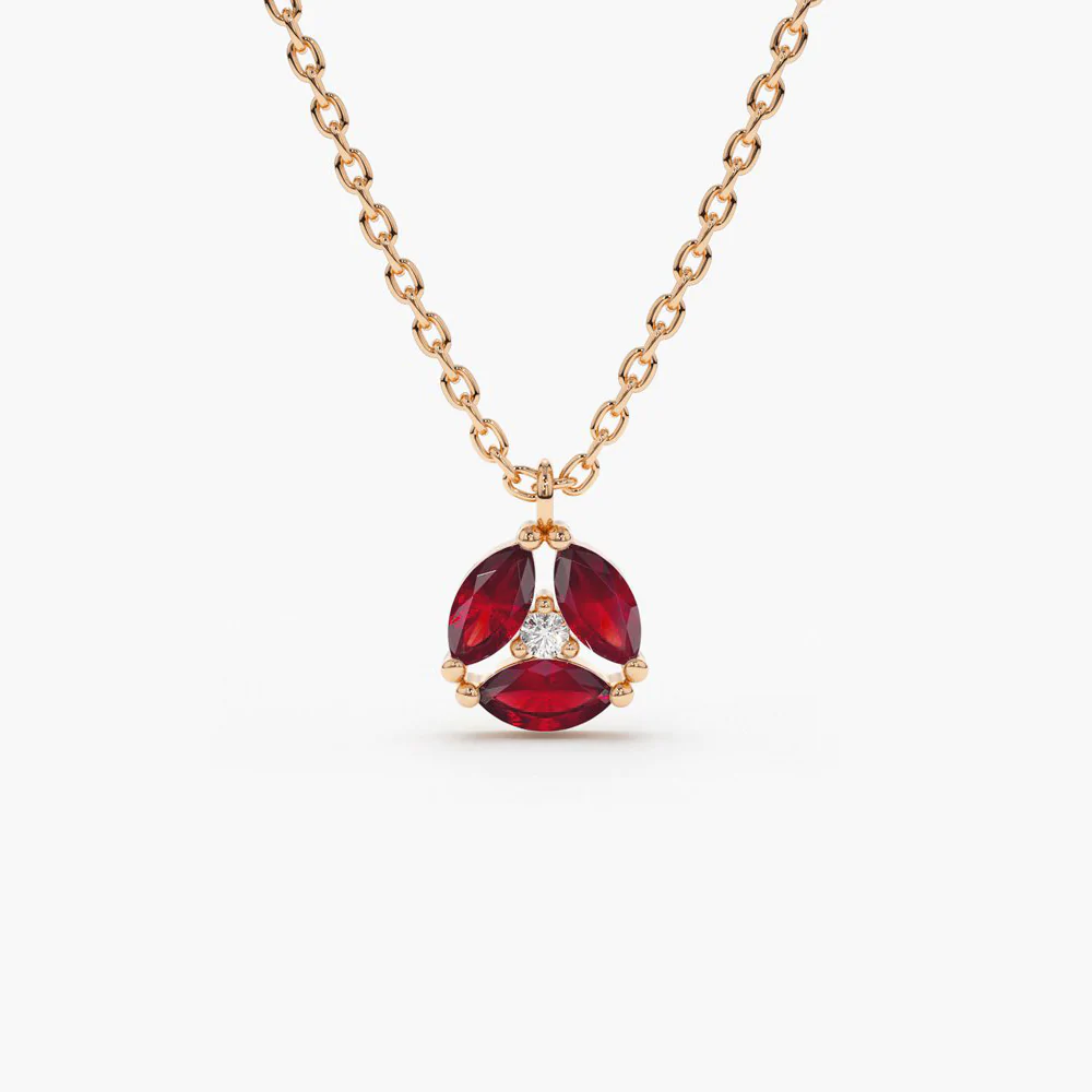 18k Solid Gold Marquise Ruby Cluster Necklace