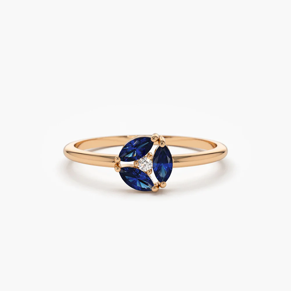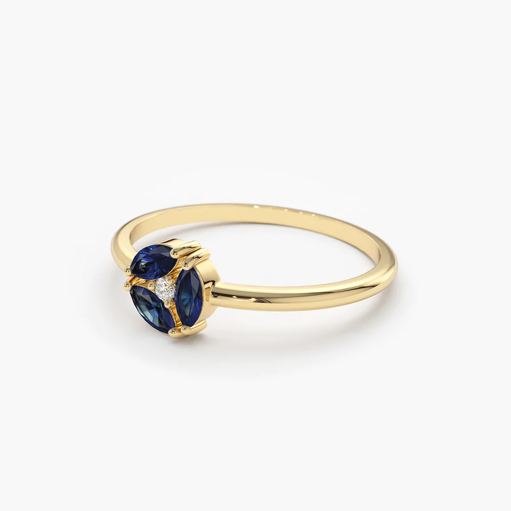 Elegant 18k solid gold ring featuring a cluster of marquise-cut sapphires—crafted for timeless charm, bold color, and refined sophistication.