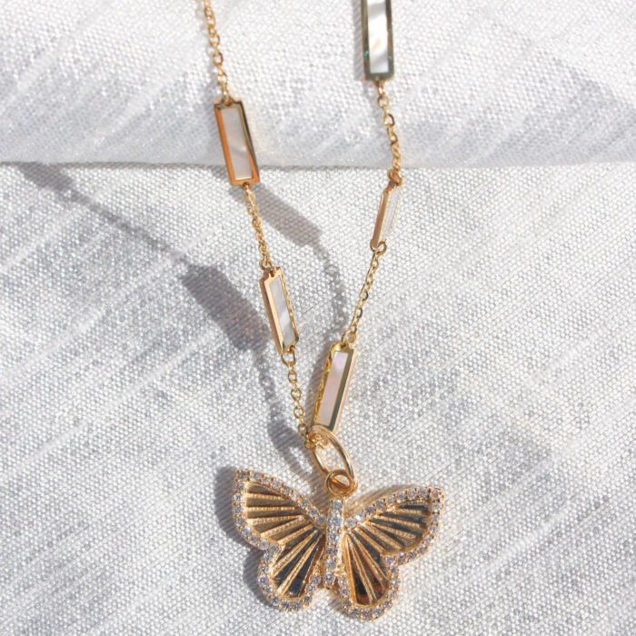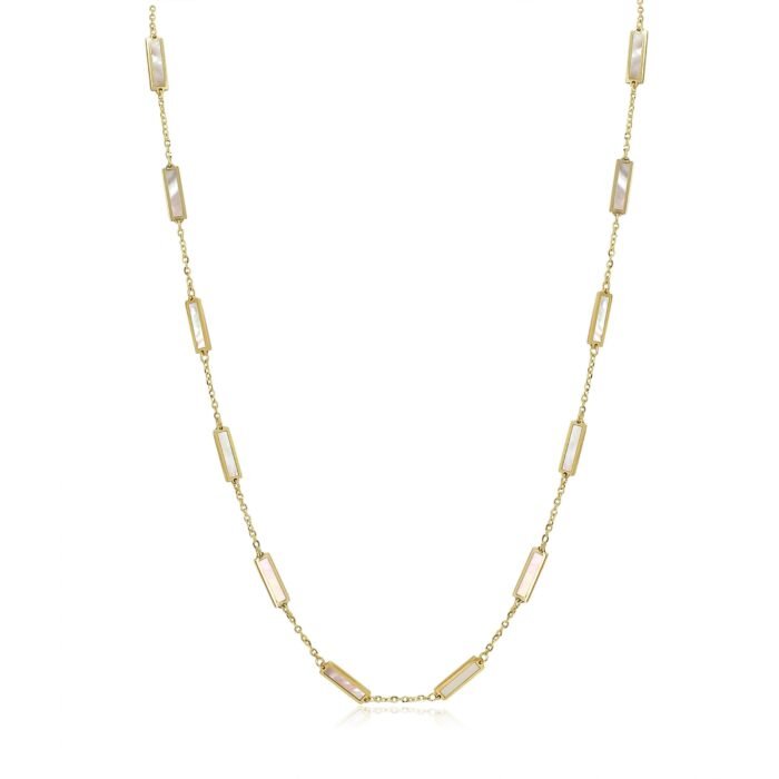 Elegant 18k solid gold necklace featuring multiple rectangular mother of pearl accents—crafted for iridescent charm and timeless sophistication.